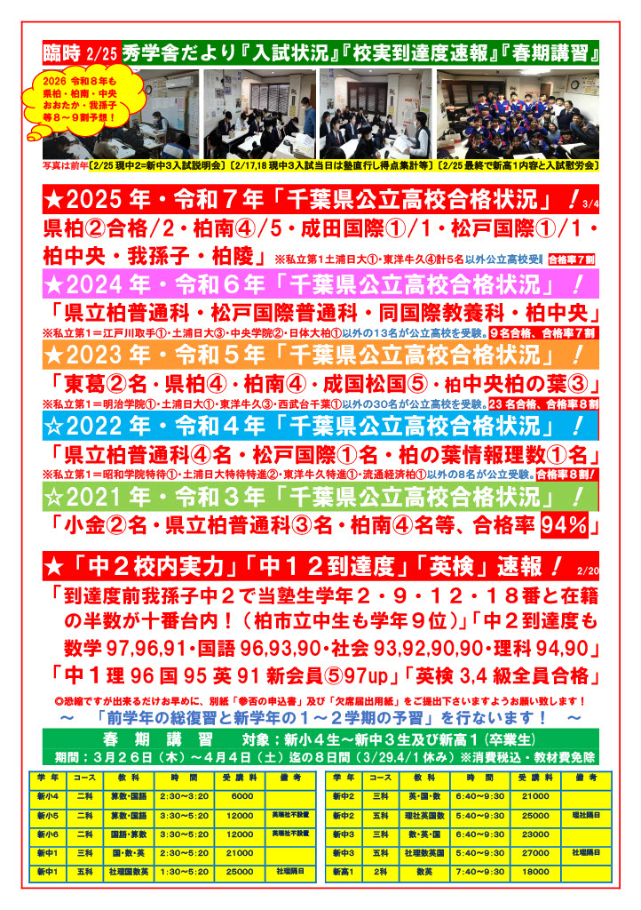 うもので追加料金は有りません!(到達度テスト等補講も各中学